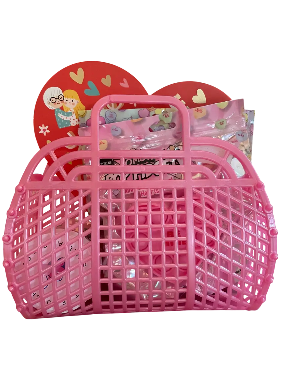 Surprise your Galentine with a magical gift that will make her smile and feel, well, loved! Each sugar-free basket comes with one Galentine's book, one Love Bug playdoh jar, one Pop Fidgety Mini Conversation Valentine's Heart, three Sticky Bubble Blobbies Valentines Conversation Hearts, and an adorable pink Jelly Tote bag she can use and reuse again and again.